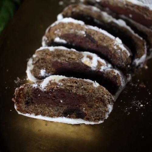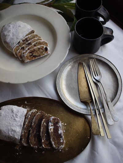 何度も買わせていただいたことがあるのですが段ボールを開けた瞬間から本当に良い香りで癒されるのですが、イメージのシュトレンをお伝えしてグァテマラの豆を選抜。珈琲豆だけなのにほんのり複雑みのある香りが相まってもうこれはモカシュトレンもスパイス一切なしのレシピにしようと!フィリングに"芽依"の副産物である酒粕で今年はガナッシュを作ることができ、珈琲生地で包んで焼き上げました。マカダミアナッツがきいていて珈琲やワインがよく合う濃度高い大人なシュトレン!コーティングはココナッツオイルでコーティングし、甜菜糖(有機甜菜糖を粉糖にしてから使ってます)で雪化粧をし一晩寝かせ、翌日茶漉しで仕上げています。日を置くごとに味わいが変化していくのがシュトレンのたのしみなところ…加えて塩麹のおかげで旨みも増していきます。どちらもひと切れふた切れ…なんてあっという間に食べれてしまうウィンターシュトレン。